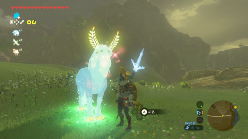冒険中に高いところに登ってから全体を見渡してみると山の頂上からオーロラに輝く一筋の光が見え、気になって近づいてみると、そこには山の主様がΣ(・ω・ノ)ノ!