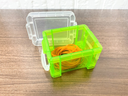 フックにかけたりそのまま置きっぱなしにしがちな輪ゴムですが見た目を可愛く保管するのは、なかなか難しいアイテムですが、このコンテナに入れると、このままキッチンやカウンターに置いておくだけで可愛く収納できそうですね♪(^-^)/