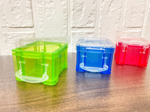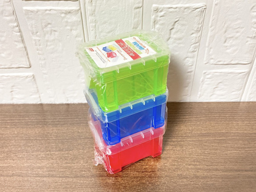 ダイソーのフタ付きクリアカラープチコンテナ3Pです( ̄▽+ ̄*)