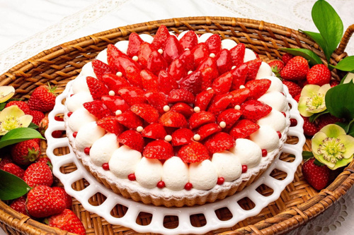 クリームにはゴールドパウダーを散りばめ、トッピングのみずみずしいイチゴにはパールのチョコレートを飾りつけています。見た目にも華やかなタルトは、ホワイトデーの以外の贈り物にも喜ばれそうですね!