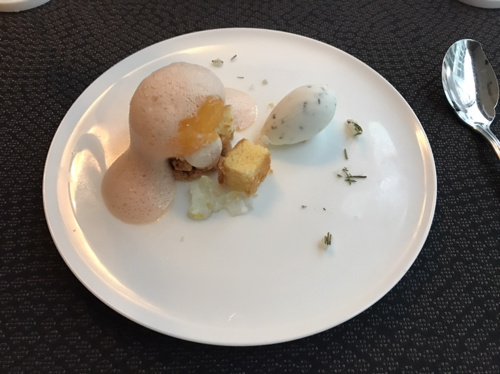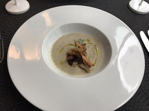 続いてはこちらのスープ、このポタージュは上に添えてあるのと一緒に食べるのと、