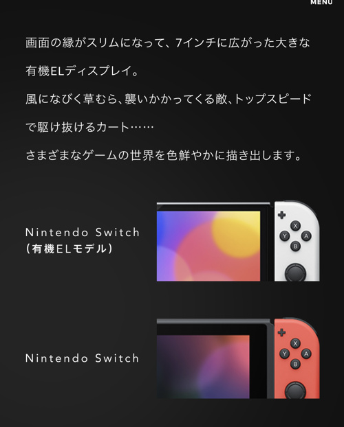さて、任天堂の公式サイトを既にチェックしている方はもうご存知かもしれませんが前のSwitchと何処が違うのかというと、鮮やかな有機ELディスプレイとなっており、どこでも色鮮やかなゲームを楽しむ事が出来るようになりました(⸝⸝ᵕᴗᵕ⸝⸝)