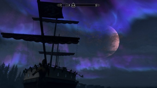 夜にふと空を見上げるとオーロラお空に映る船と月が絵になるようにとても綺麗だったのでパシャリと撮影(o^-')b