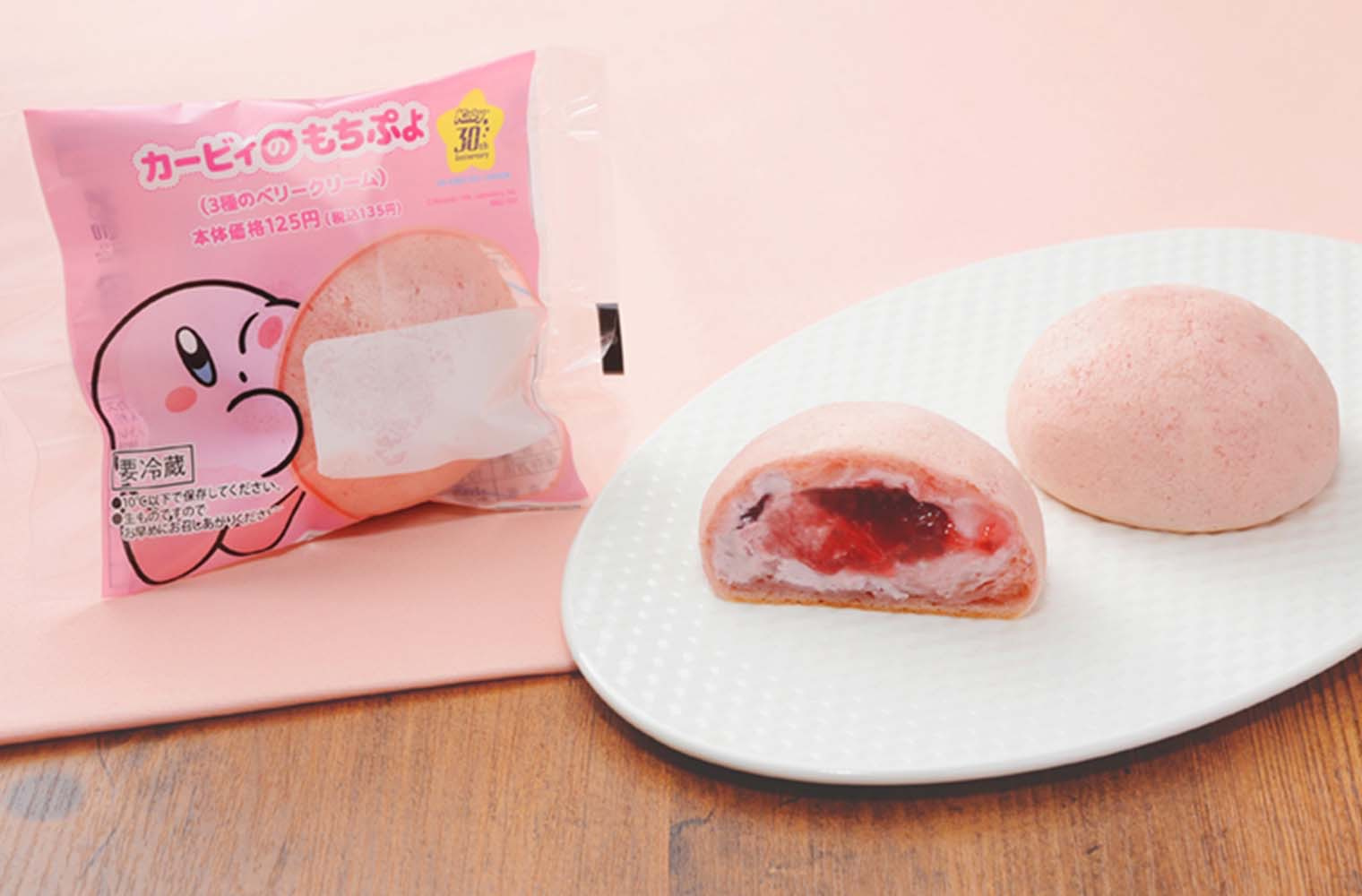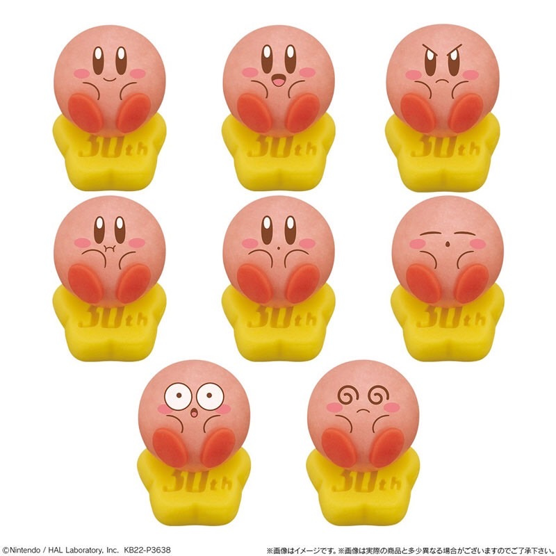 もち生地のなかにいちご味のあんが入っていて、カービィの愛らしい丸いフォルムが再現されています。表情のランナップは亜鉛8種類。
