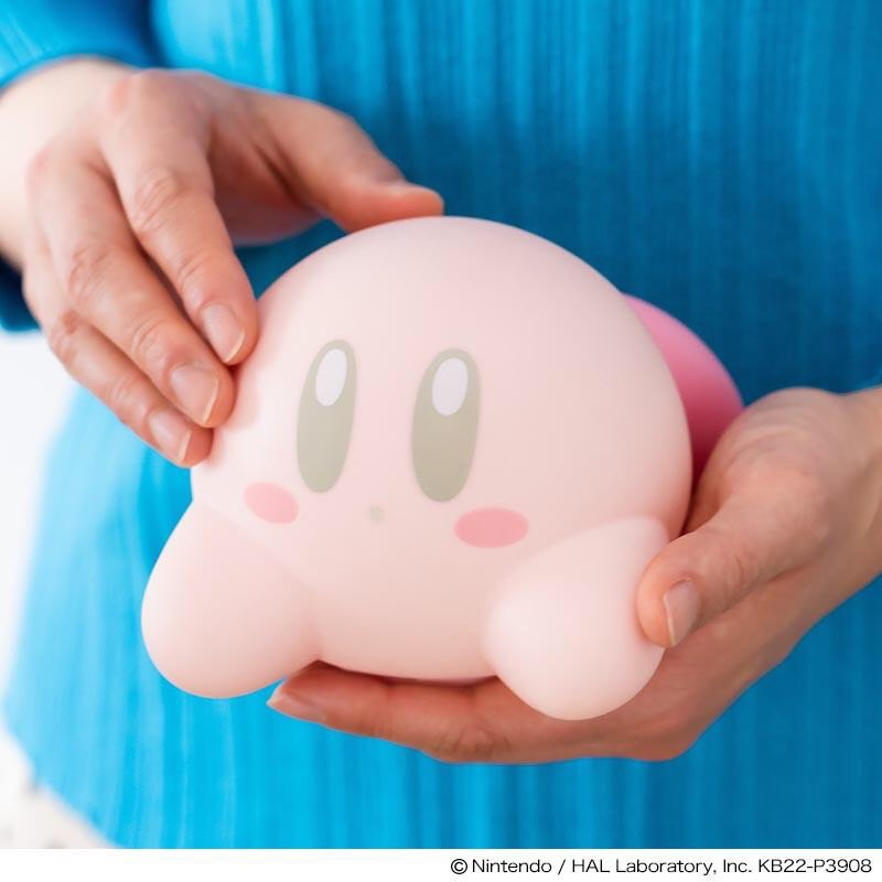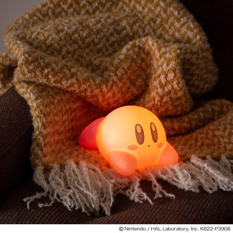 ルームライトは寝そべり姿のカービィです、やさしいPVC素材を使用し、触り心地がよさそう。