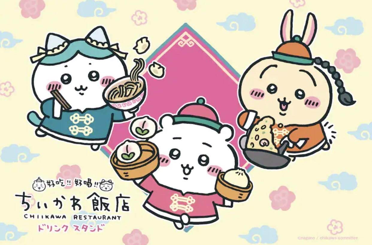 「ちいかわ」とパルコによるコラボカフェ第2弾「ちいかわ飯店」よりドリンクと肉まんを提供する「ちいかわ飯店ドリンクスタンド」が、7月22日から8月21日まで静岡・静岡パルコにて開催される。