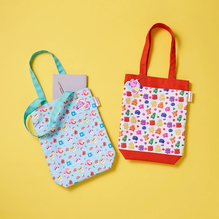 また、キーホルダーやマグカップにはさまざまな表情をしたカービィが描かれています。グミになったカービィのデザインのトートバッグはマチ付きで荷物が多めでも大丈夫です(°∀°)b