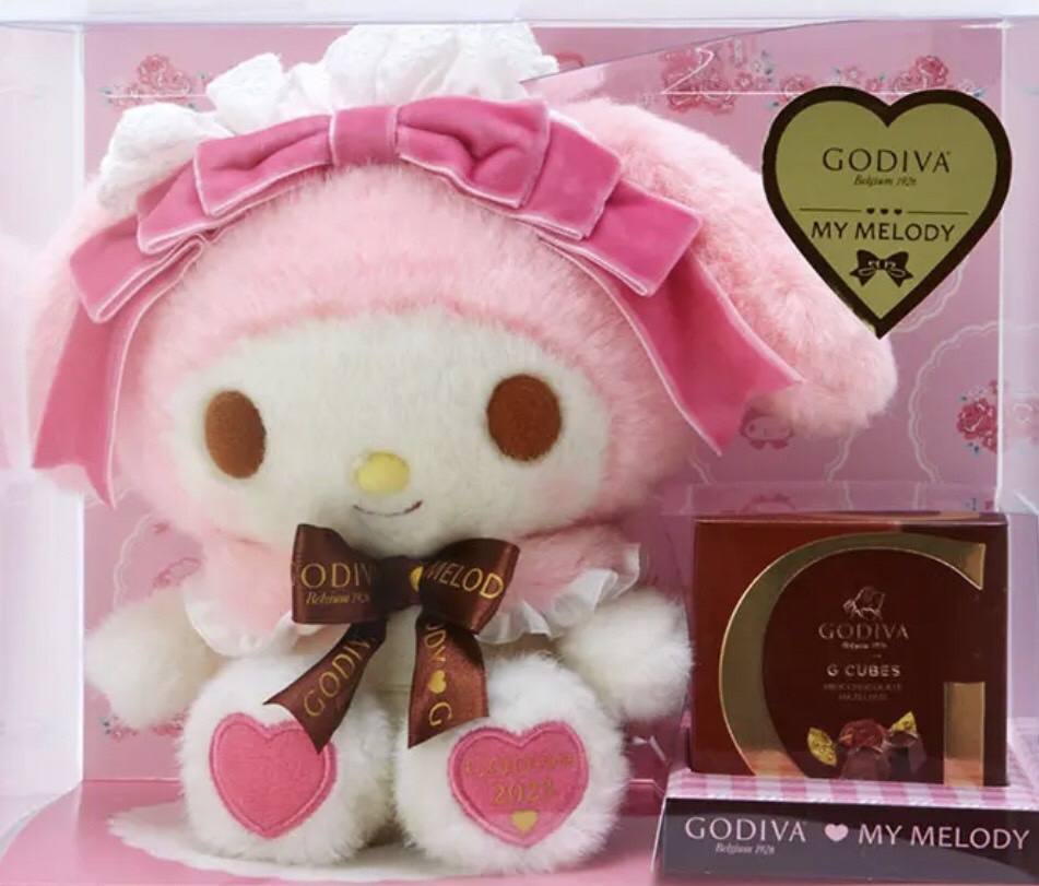 ハローキティとマイメロディの足裏、シナモロールのハット部分には「GODIVA2023」の年号入り(`∀´)