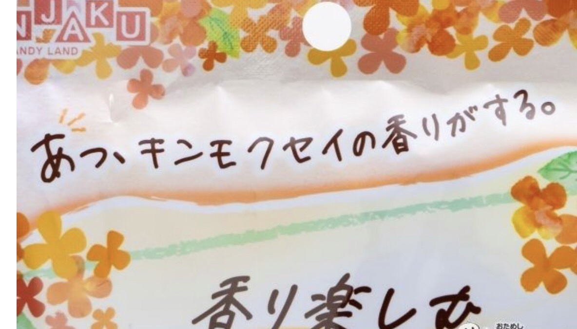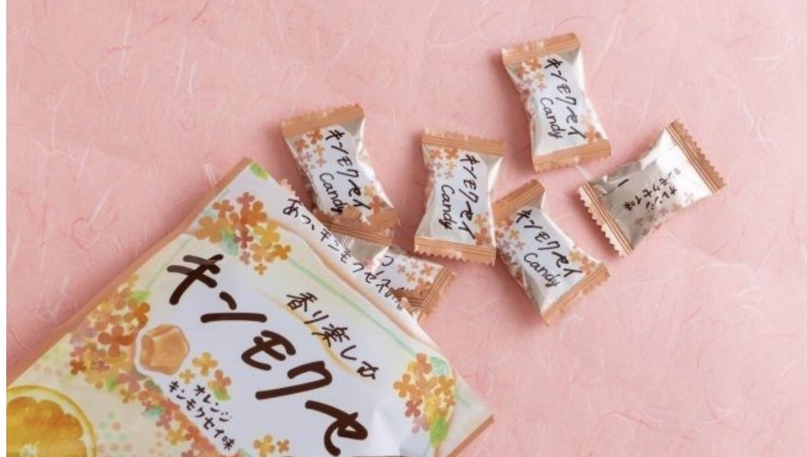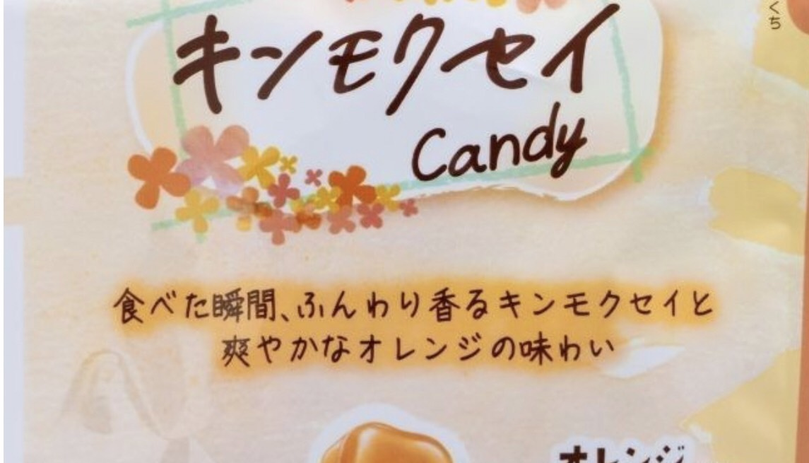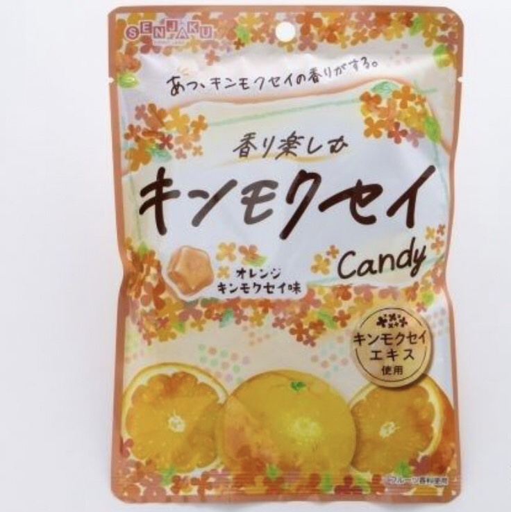 手書き風のパッケージが心をくすぐる『キンモクセイCandy』(内容量 65g・希望小売価格 194円・発売中)は、オレンジ味をベースとしたキンモクセイの香りが広がるキャンディだ。