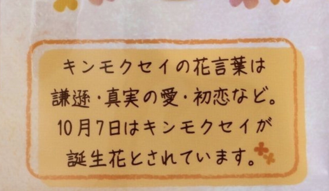 またパッケージの裏面には、キンモクセイの花言葉と誕生花の月日が記されている。このような細かいメッセージに製品愛を感じてしまう♪