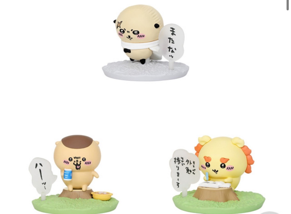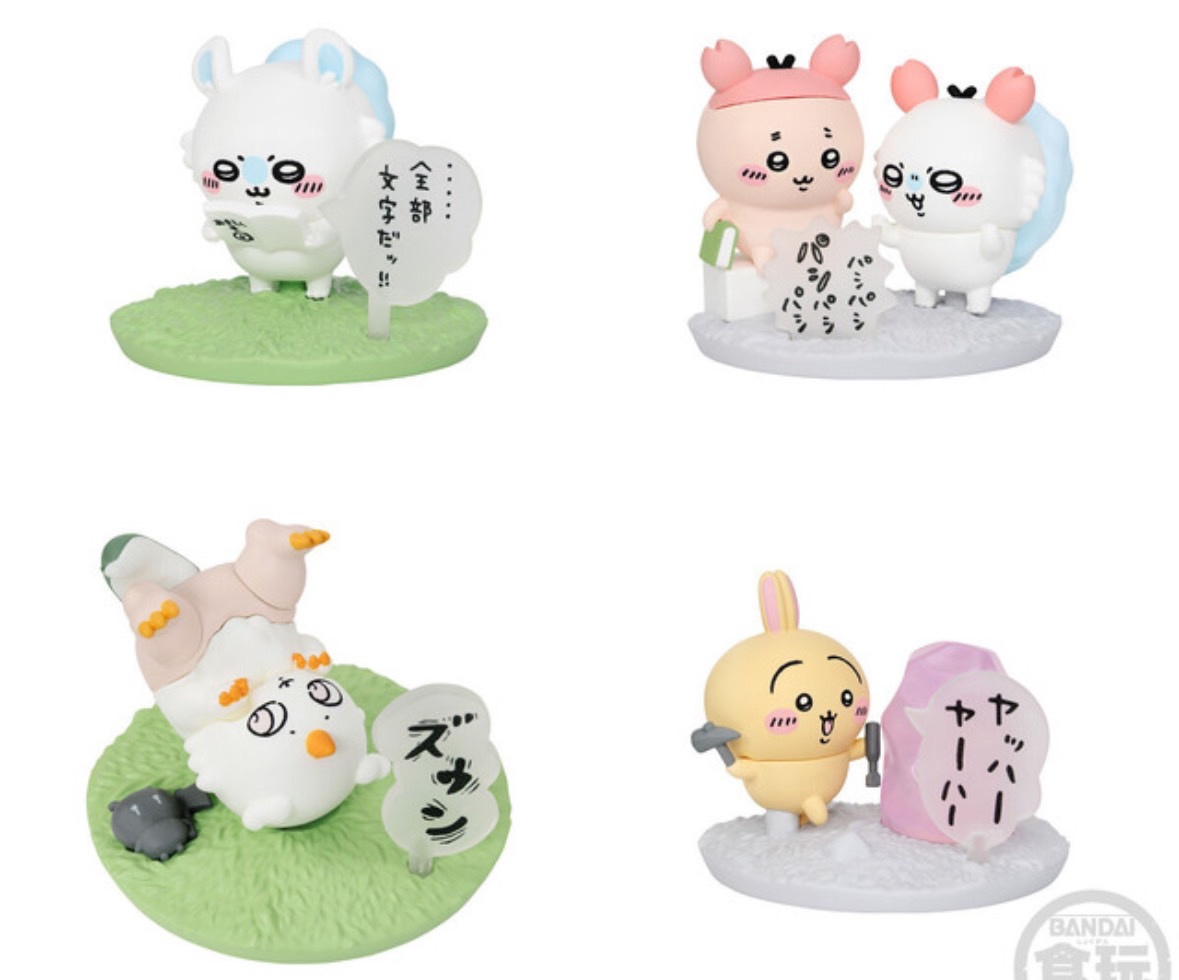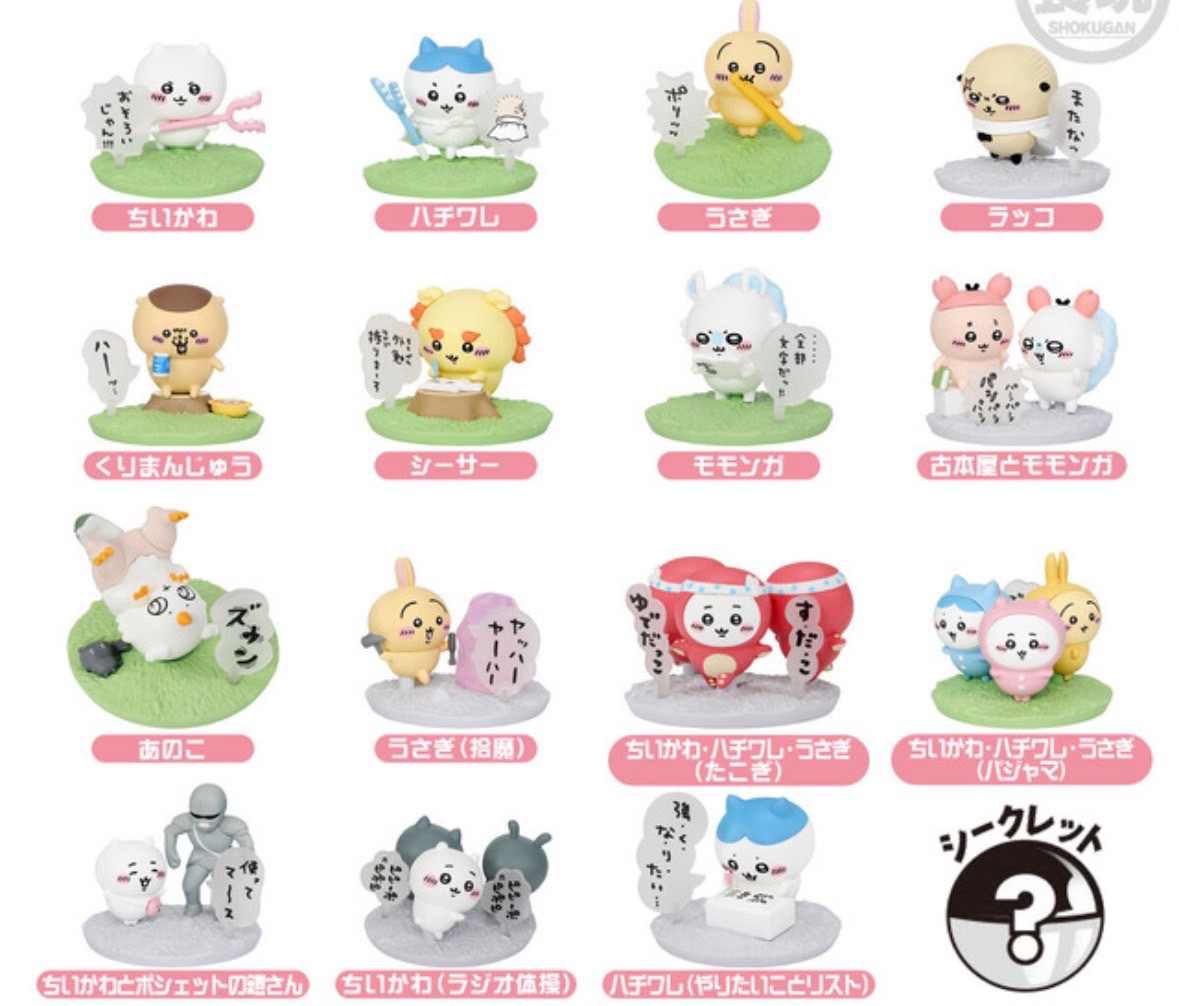 全高30mmのフィギュアには、ちいかわたちのほっこりする世界観が再現されています。ラインナップはさすまたを持ったちいかわ、ハチワレ、食べ物を「ポリッッ」とするうさぎなど、特別仕様のシークレット1種を含む全16種類です。